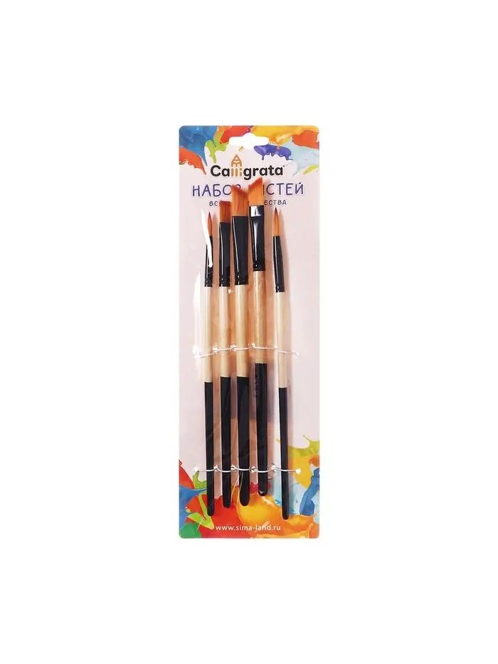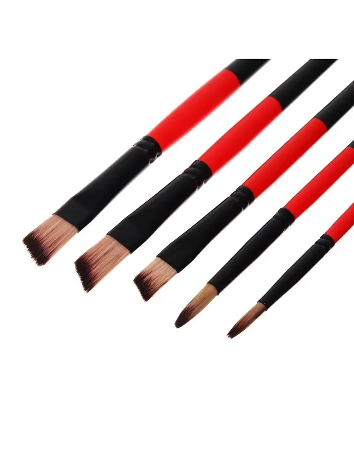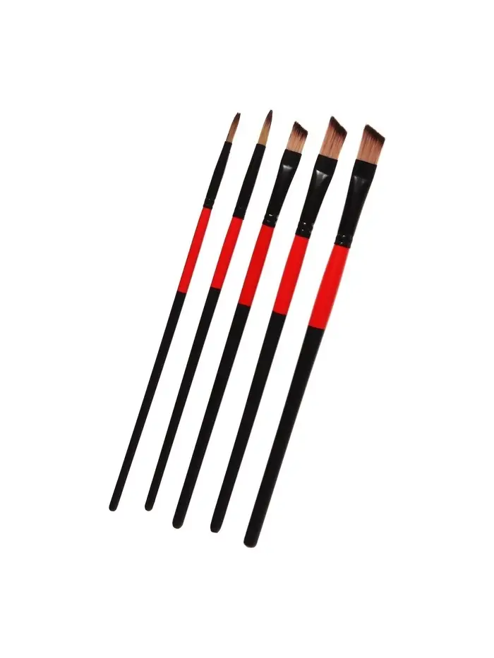 Набор кистей для рисования, нейлон, 5 штук, круглые, плоские, международный размер