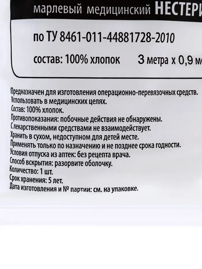 Марля изготовлена из высококачественного хлопка, что обеспечивает мягкость, воздухопроницаемость и гипоаллергенность, делая материал безопасным для контакта с кожей.