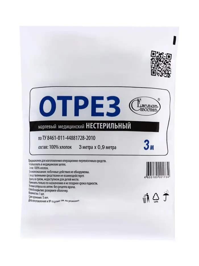 Медицинский марлевый отрез "Емельянъ Савостинъ", 32 г/м², 0,9 × 3 м — это надежный и универсальный материал для медицинских, гигиенических и бытовых нужд. Он сочетает мягкость, прочность и воздухопроницаемость, обеспечивая безопасность и удобство при использовании в любых условиях.