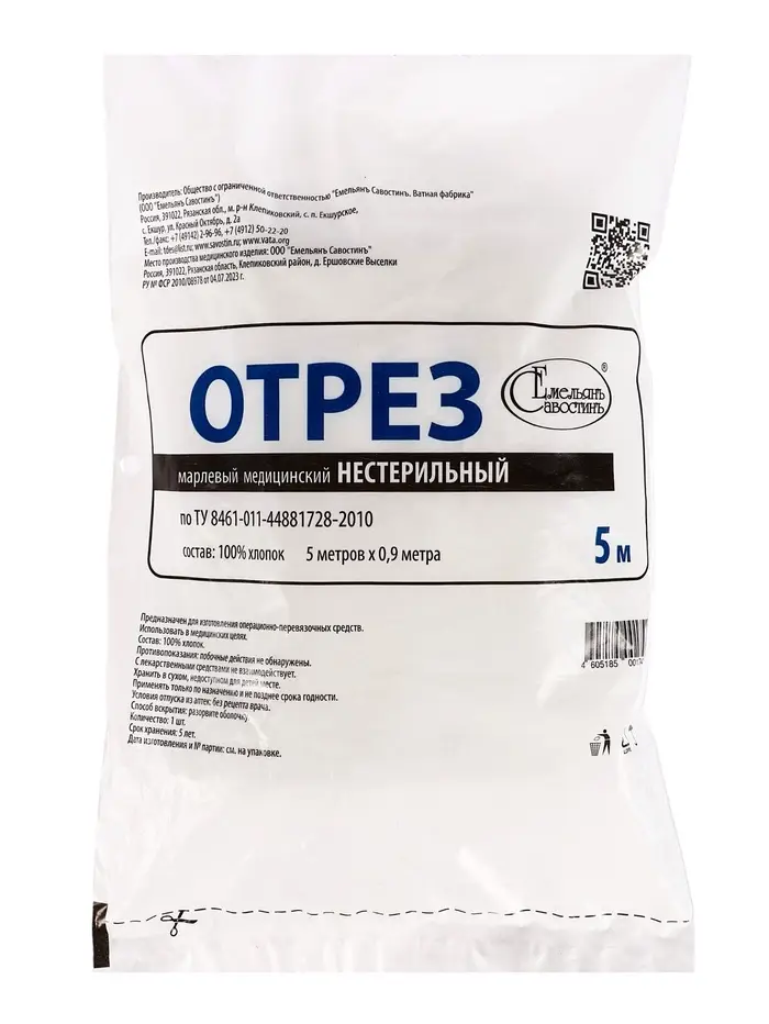 Марля медицинская "Емельянъ Савостинъ", 0,9 × 5 м, плотностью 32 г/кв.м — это надежный и удобный материал для ухода за ранами и наложения повязок, обеспечивающий безопасность, комфорт и ускорение процесса заживления.