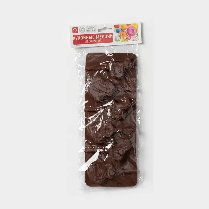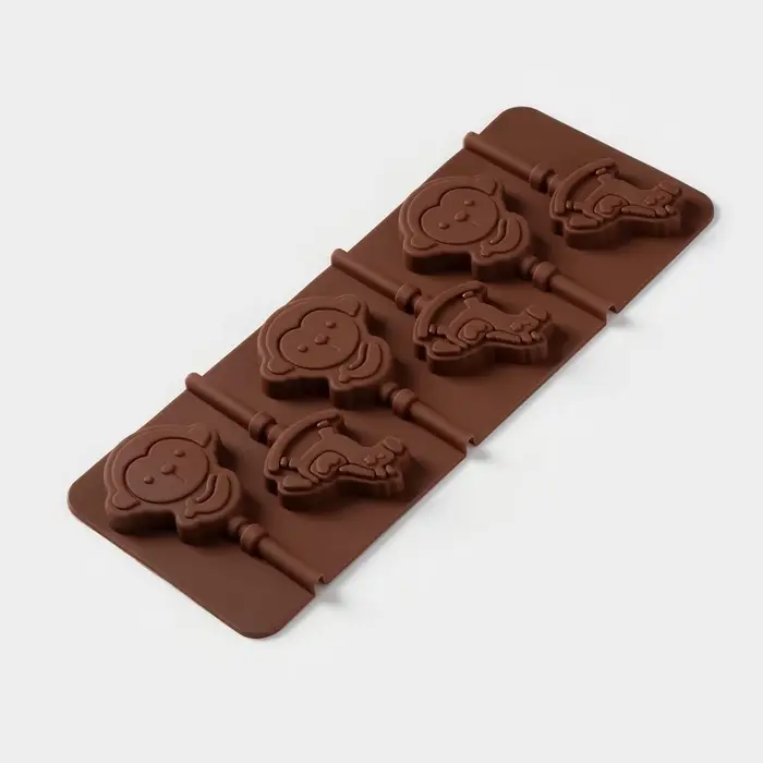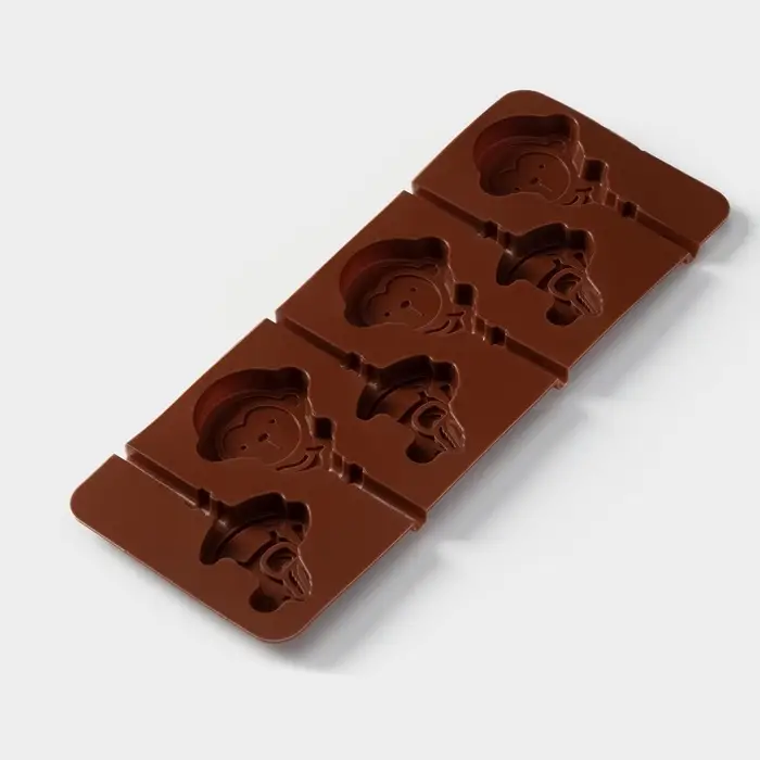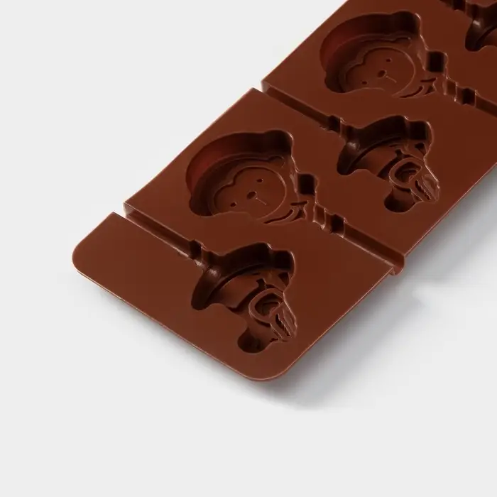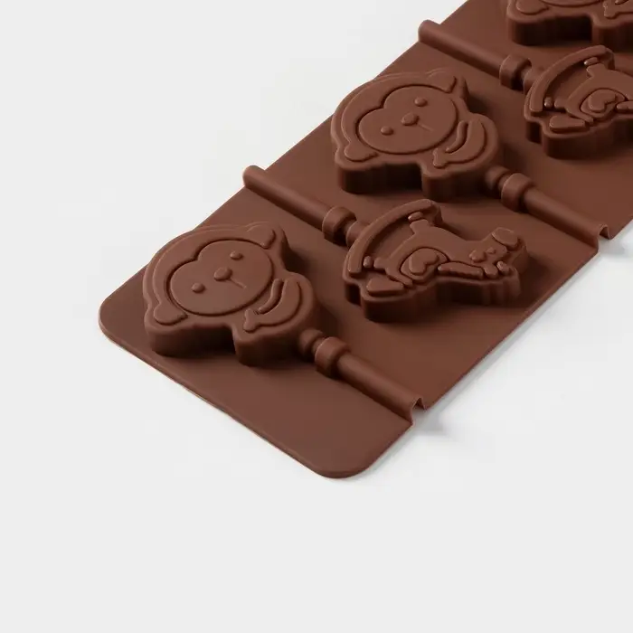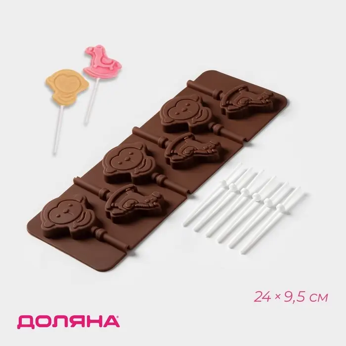 Форма для леденцов Доляна «Детство», силикон, 24×9.5 см, 6 ячеек (5×4.6), с палочками, коричневая