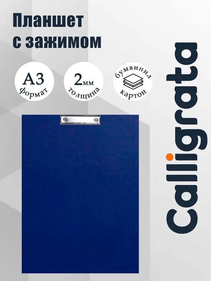 Изготовлена из жёсткого износоустойчивого картона 3 мм с двухсторонним покрытием из высококачественного бумвинила. Позволяет комфортно работать с документами, рисунками, чертежами на весу. Оснащён прижимным механизмом из качественного металла, который надёжно удерживает документы, позволяет комфортно делать записи на весу.