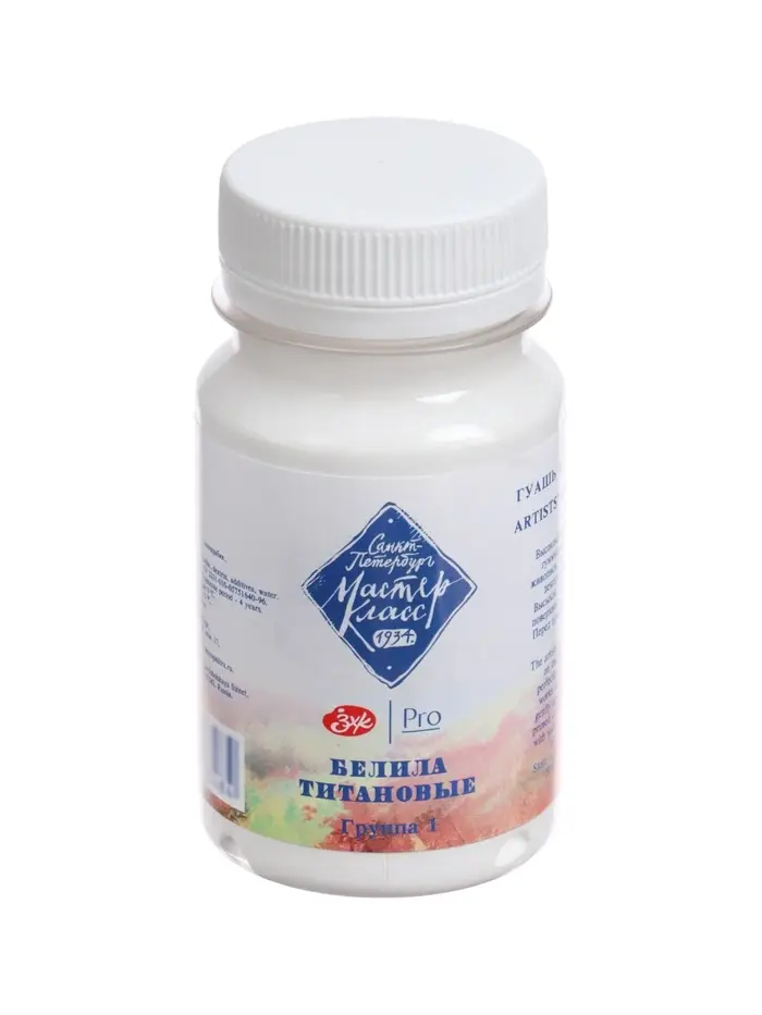 Гуашь художественная «ЗХК. Мастер класс», 100 мл, в банке, белила титановые, (1727101)