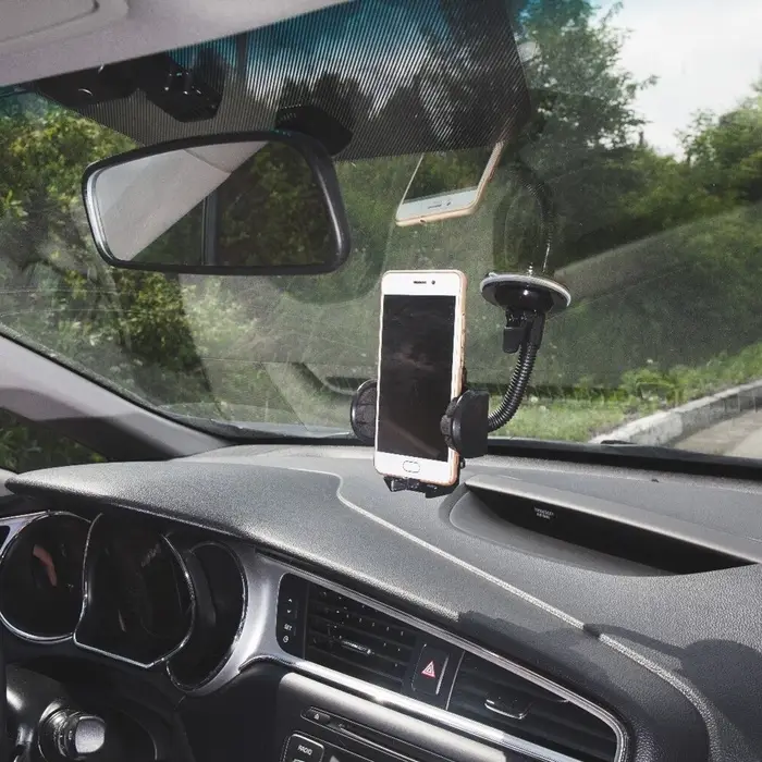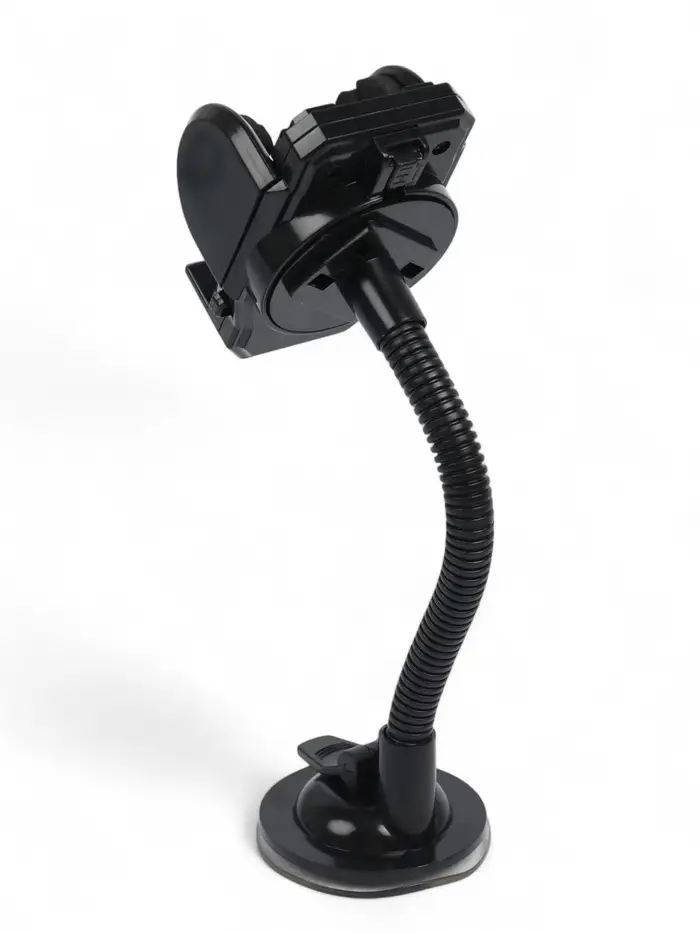 Раздвижной держатель предназначен для удобной и надёжной фиксации телефона и других устройств. Изделие легко крепится на лобовое стекло и регулируется по размеру гаджета (от 42 до 113 мм). Гибкая штанга и поворотный механизм (360°) позволяют задать любое положение гаджету.