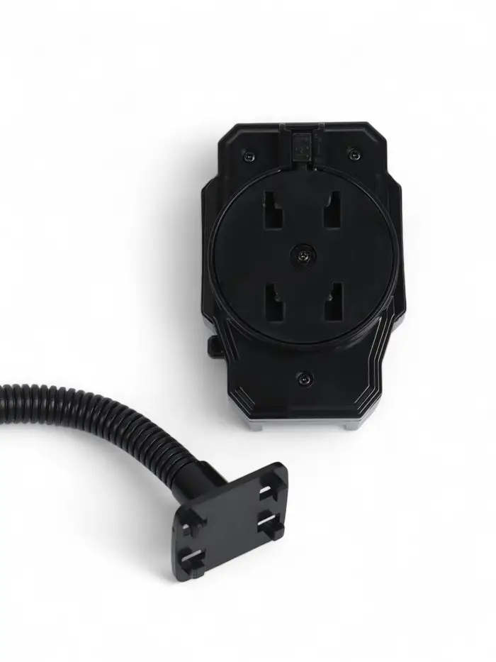 - Обратите внимание, что для того, чтобы зафиксировать корпус держателя на гибкую штангу необходимо сопоставить удерживающие защёлки с отверстиями и с силой до щёлчка прижать детали друг к другу. После этого держатель будет надёжно зафиксирован.