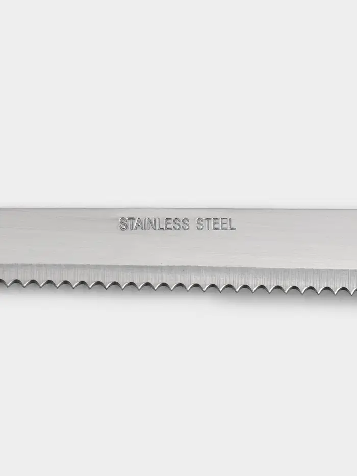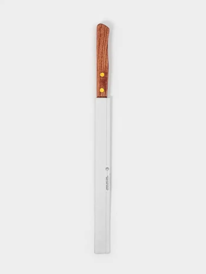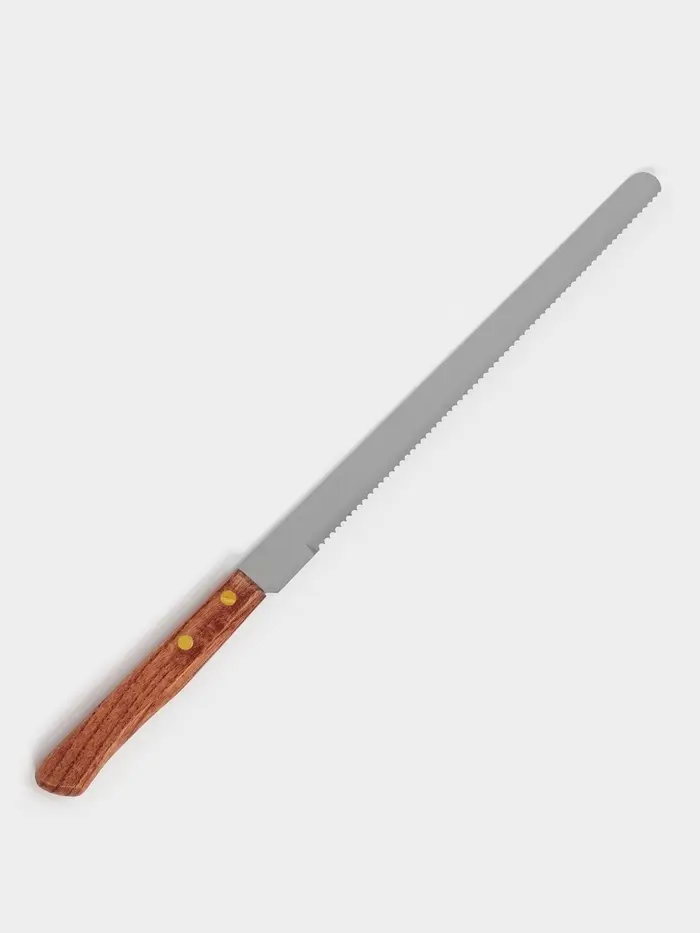 Нож для бисквита крупные зубцы, длина лезвия 25 см, деревянная ручка, толщина лезвия 1 мм