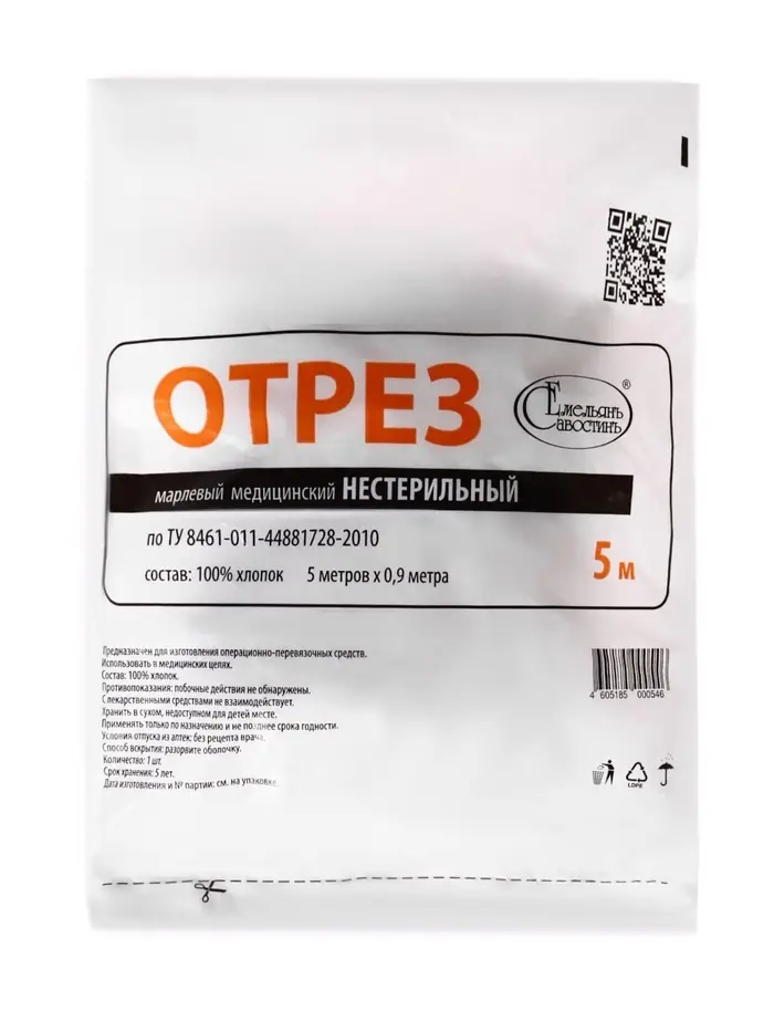 Отрез марлевый "Емельянъ Савостинъ", плотность 28 г/м², 5 × 0.9 м — это надежный и практичный текстильный материал, который подходит для медицинских процедур, ухода за кожей и бытового использования, обеспечивая безопасность, гигиену и комфорт.