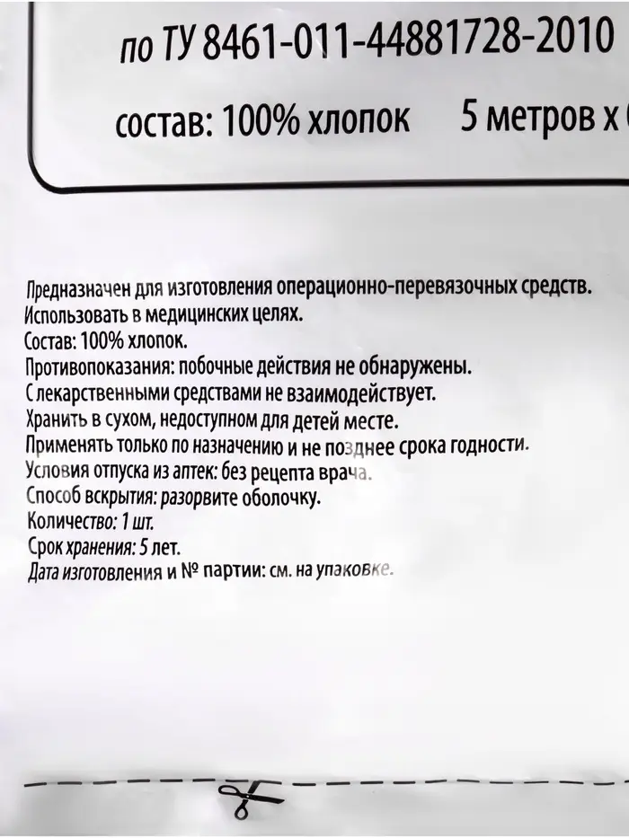 - Прочный и легко режется, подходит для перевязок, повязок и бытовых целей.