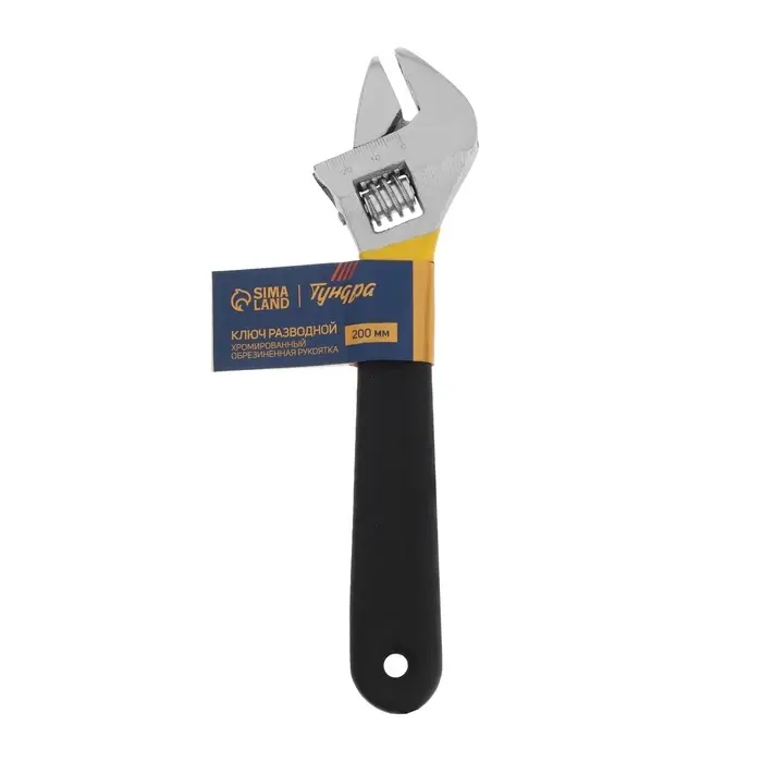 Ключ разводной ТУНДРА, обрезиненная рукоятка, 200 мм