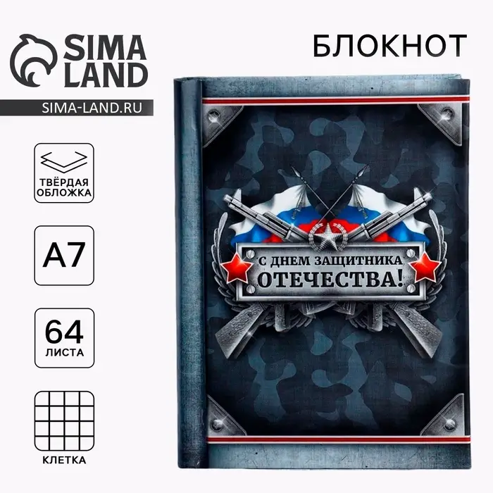 Блокнот А7, 64 л. в твердой обложке, 23 февраля «С Днем Защитника Отечества»