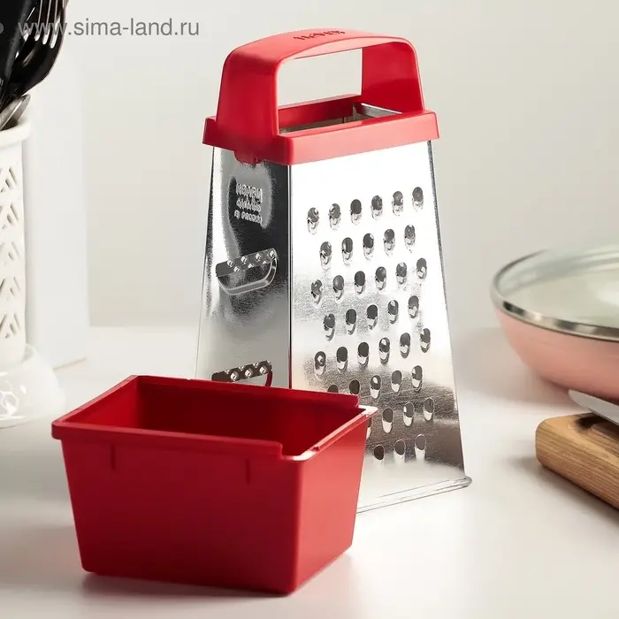 Тёрка с контейнером КВАРЦ «Универсал», 4 грани, 450 мл, 27×12 см, металл, МИКС