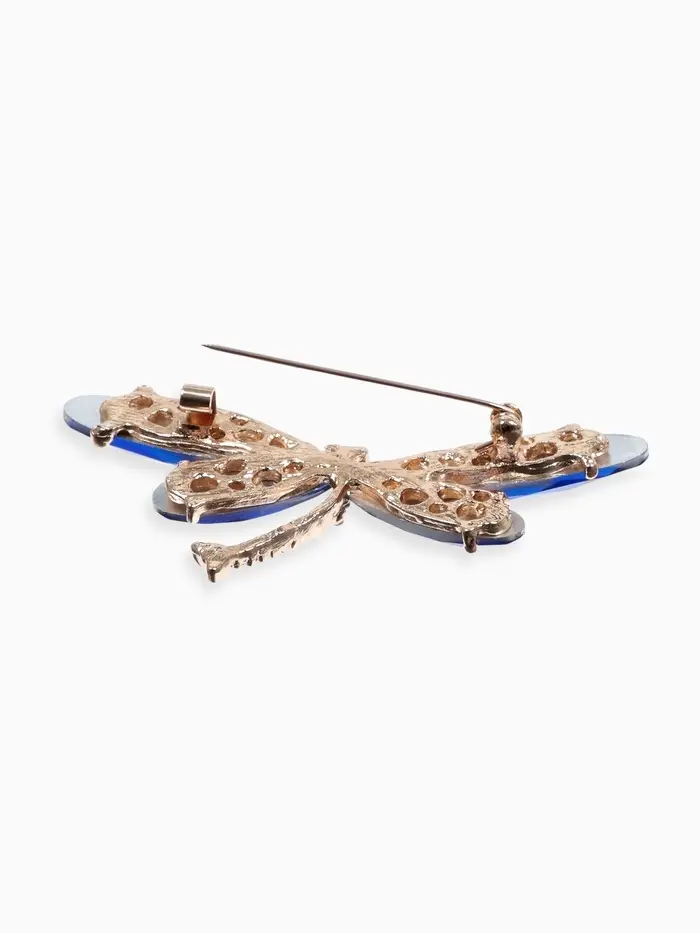 Брошь «Стрекоза», граненые крылья, синяя в золоте
