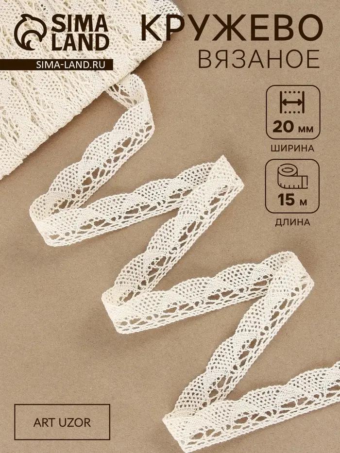 Кружево вязаное, 20 мм, 15±1 м, бежевое
