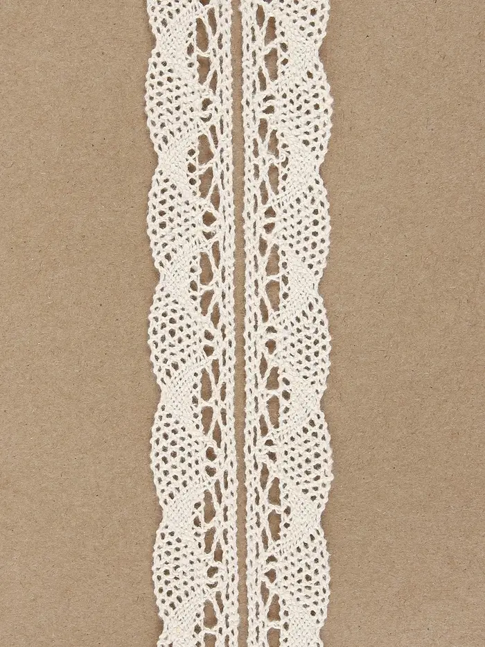 Вязаное кружево легко спутать с hand-made – рисунок у него сложный и выразительный. Узоры, созданные из переплетения множества нитей, принимают нужную форму и красиво смотрятся на любом изделии. Вязаное кружево — отличный вариант для декора одежды и домашнего текстиля. А также если хотите дополнить аксессуар деталью, будто связанной крючком, такой вариант отлично подойдёт.