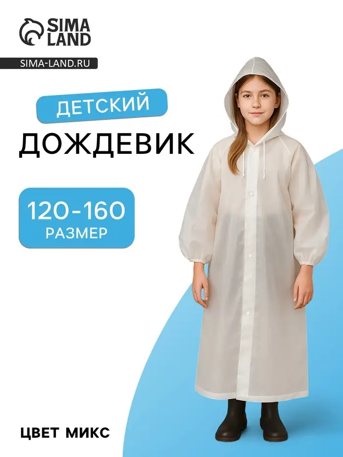 Дождевик детский, рост 120-160 см, ЭВА 85 г, МИКС