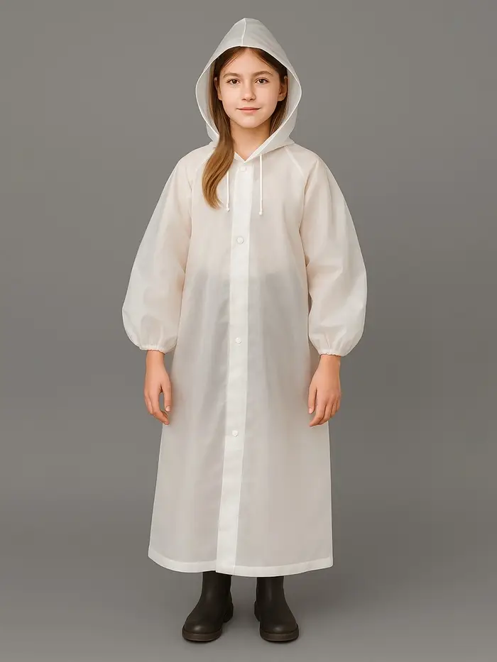 С этим плащом прогулка под моросящим осенним дождём или весенний ливень по дороге из школы перестанут быть проблемой. Ребёнок останется сухим, а вы — спокойны. Простой уход и долговечность материала делают эту вещь практичным спутником на несколько сезонов.