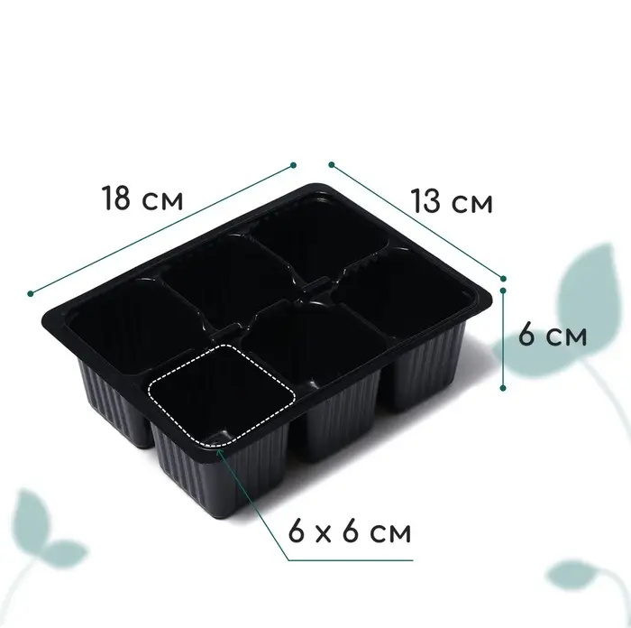 Кассета для рассады, 6 ячеек по 120 мл, пластик, чёрная, 18×13×6 см, набор 10 шт., Greengo