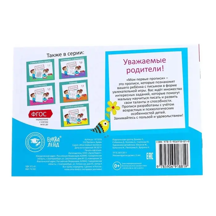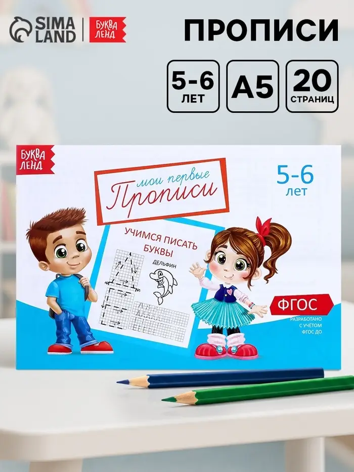 - 6 прописей, каждая с 20 страницами для развития разных навыков.
