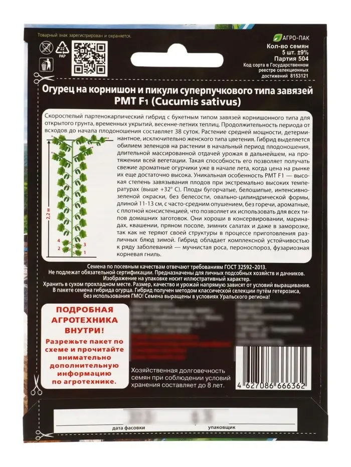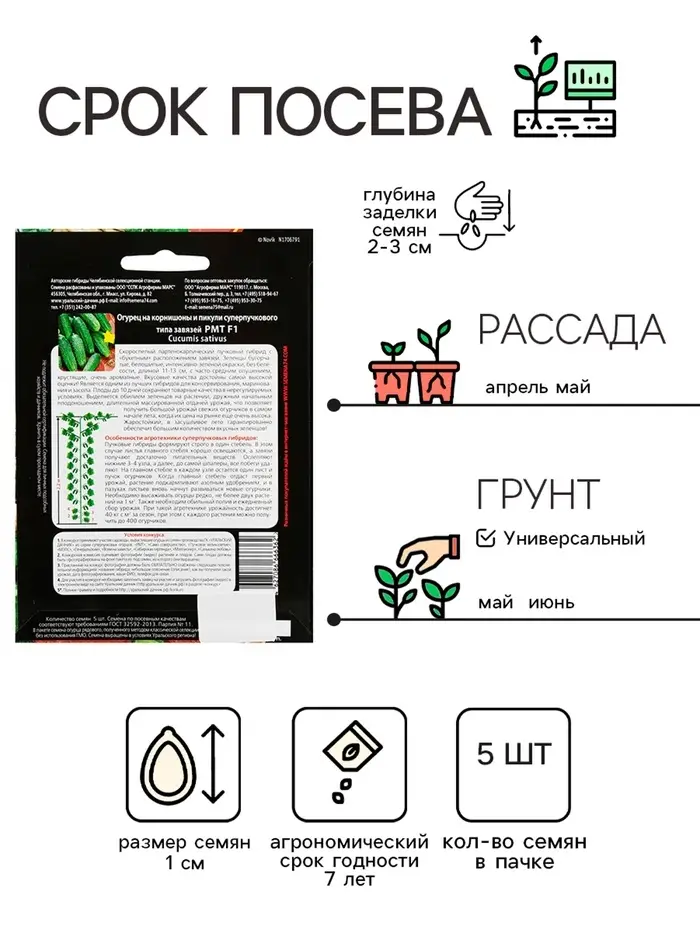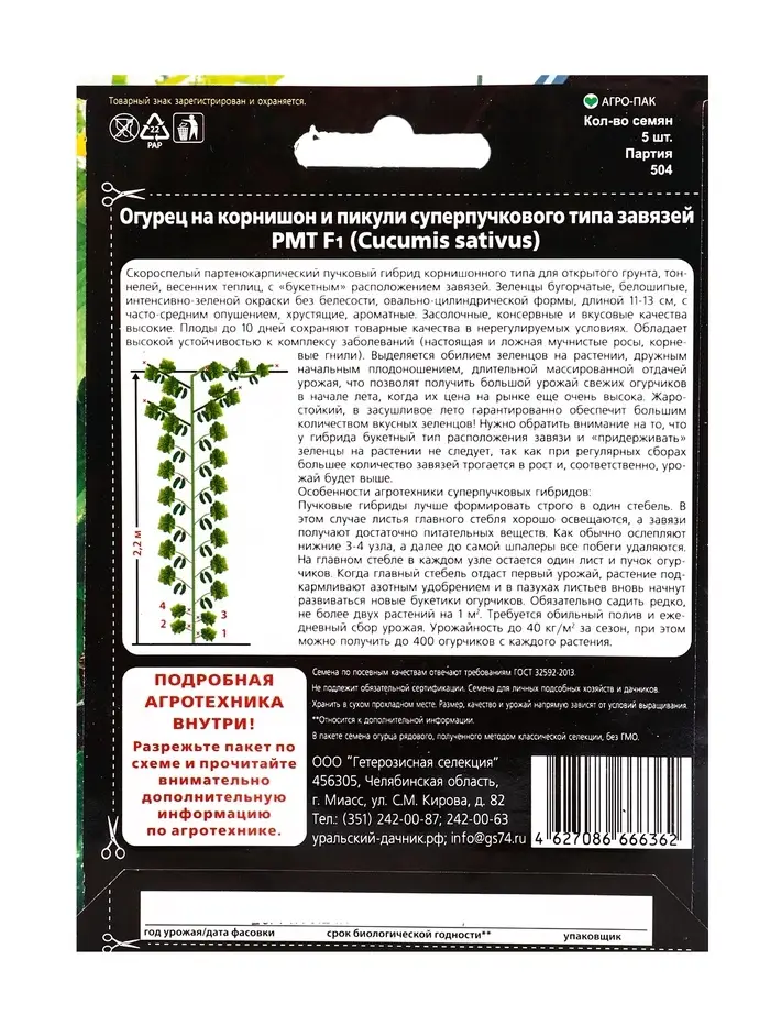 Семена огурец «РМТ F1», супербукетный тип, партенокарпический, 5 шт.