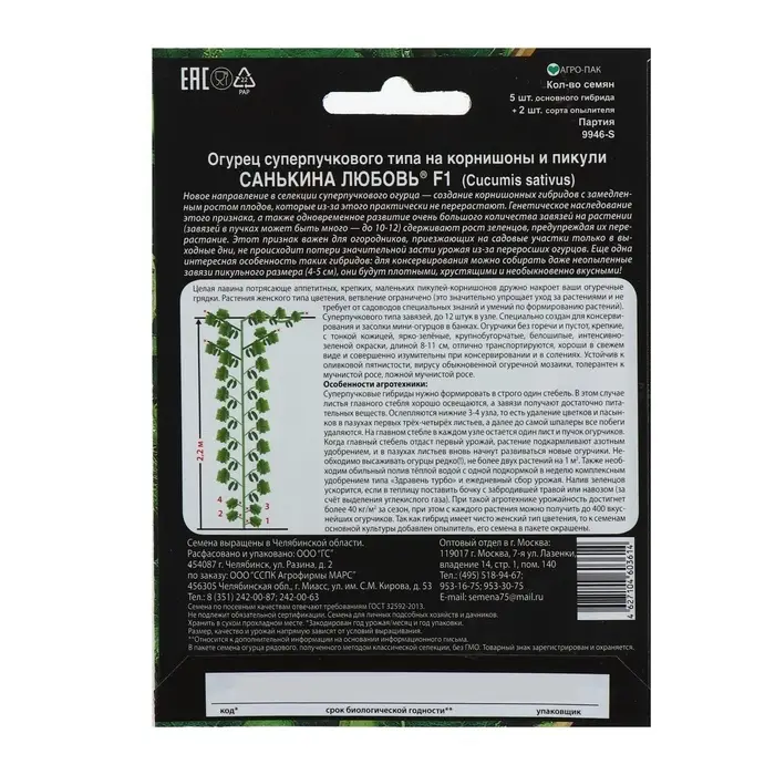 Семена Огурец «Санькина Любовь», F1, супербукетный тип, партенокарпический, 7 шт., «Уральский дачник»