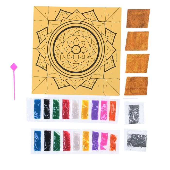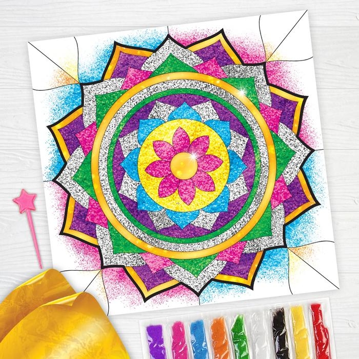 Набор для творчества. Фреска песком «Калейдоскоп желаний» + 9 цветов песка по 4 гр, блёстки, стека