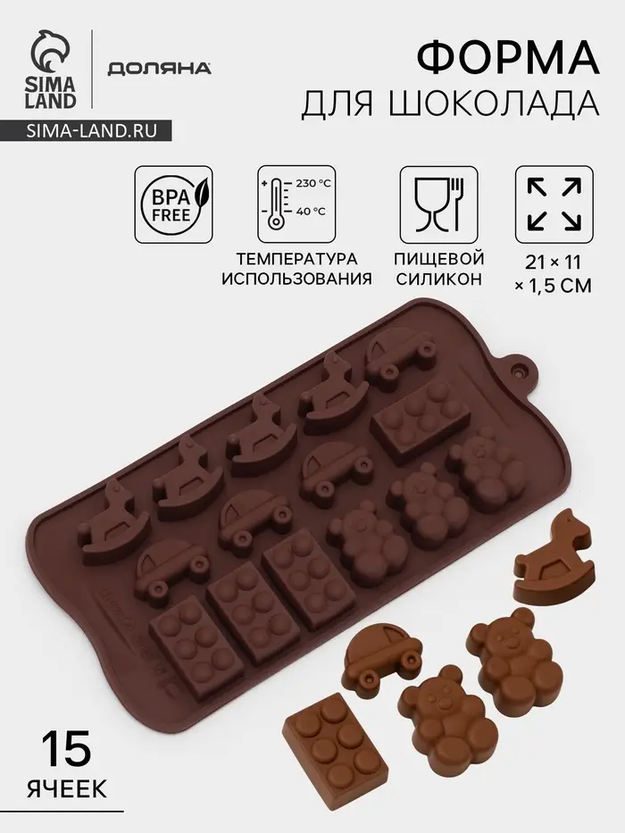 Форма для конфет и шоколада Доляна «Детские игрушки», силикон, 21×11 см, 15 ячеек (3.5×2 см), МИКС