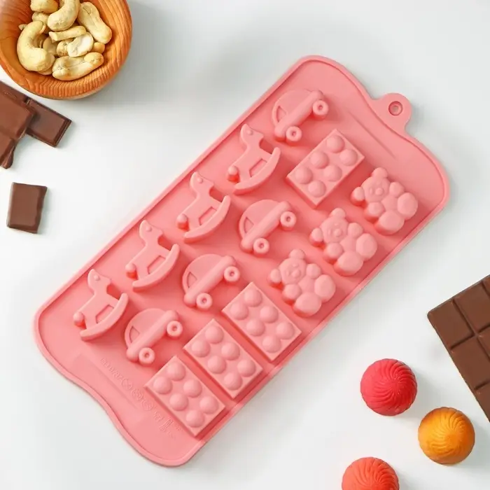 Эта форма превращает обычный шоколад в символ радости нового начала: фигурки легко выходят из силикона, сохраняя узнаваемые силуэты игрушек. Идеальный выбор для тех, кто хочет поздравить молодых родителей или порадовать малыша (через взрослых!) чем-то вкусным, милым и по-домашнему тёплым.
