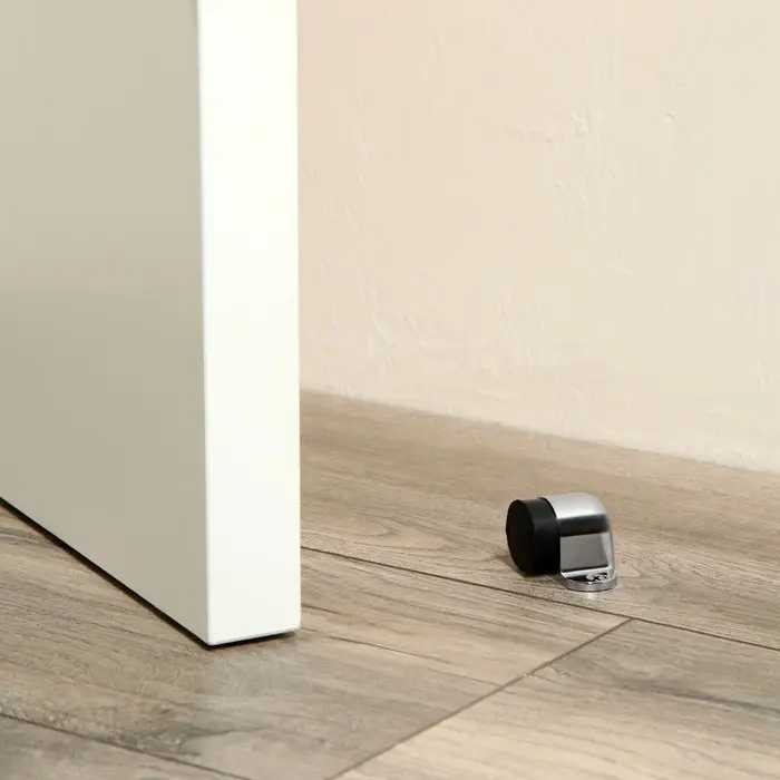 Данный упор крепится к полу возле двери, тем самым уменьшая угол её открытия и предупреждая её удары о ваши стены и мебель.