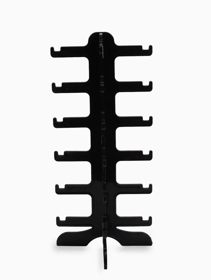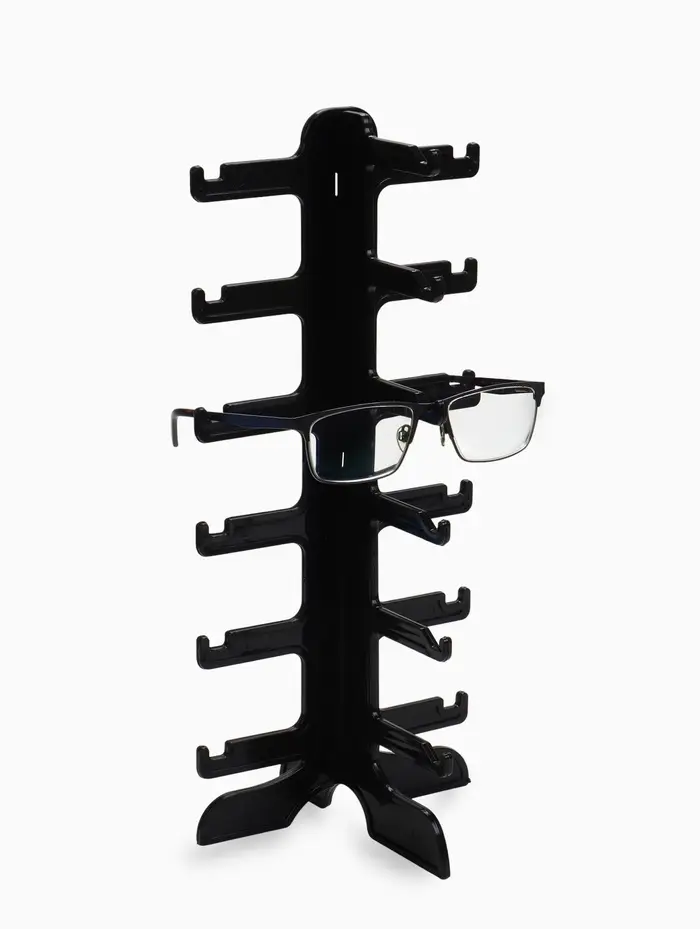 Компактная подставка под очки на 6 мест идеально подходит для аккуратного хранения и демонстрации. Габариты 16×14,5×35,5 см делают её удобной для использования на прилавках магазинов или в домашних условиях. Чёрный цвет и минималистичный дизайн подчёркивают стиль аксессуаров. Подставка надёжно удерживает очки, предотвращая их повреждение. Практичное и стильное решение для демонстрации очков.