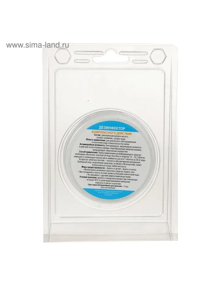 Способ применения: перед применением дезинфицирующего средства необходимо обеспечить значение рН воды бассейна в пределах 7,2-7,6. Необходимое количество таблеток помещают в плавающую капсулу или в скиммер. При интенсивном использовании бассейна дозировку допускается увеличивать в соответствии с показаниями тестера хлора. При этом необходимо постоянно производить контроль и корректировку содержания активного хлора в воде с помощью тестера и осуществлять контроль за содержанием циануровой кислоты в воде бассейна. Вносить средство не менее чем за 4 часа до приема посетителей из расчета 1 таблетка на 30 м3 воды. Не бросать таблетки в бассейн (опасность обесцвечивания материалов).