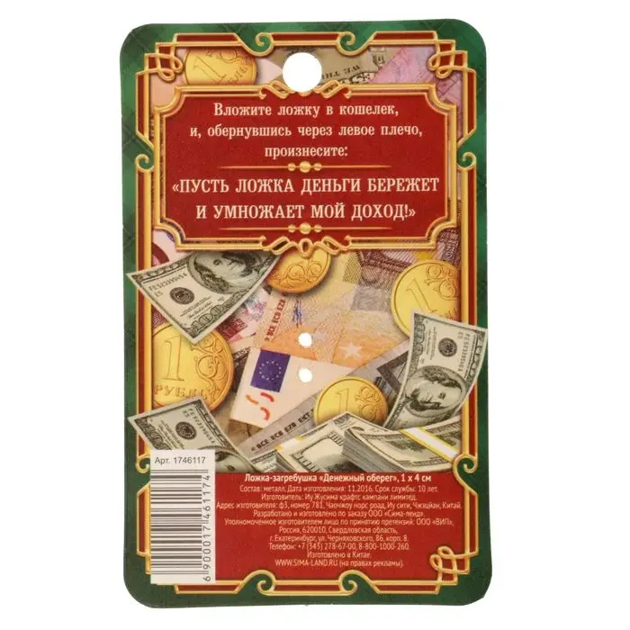 Кошельковый талисман: ложка загребушка «Денежный оберег», 4×0.5 см
