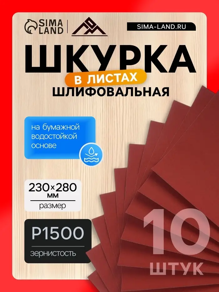 Шкурка шлифовальная в листах ЛОМ, на бумажной основе водостойкая, 230×280, Р1500, 10 шт.