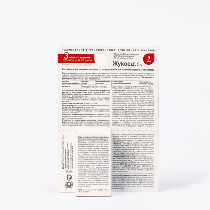 Действующее вещество: 125 г/л альфа-циперметрина + 100 г/л имидаклоприда + 50 г/л клотианидина..