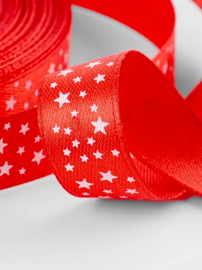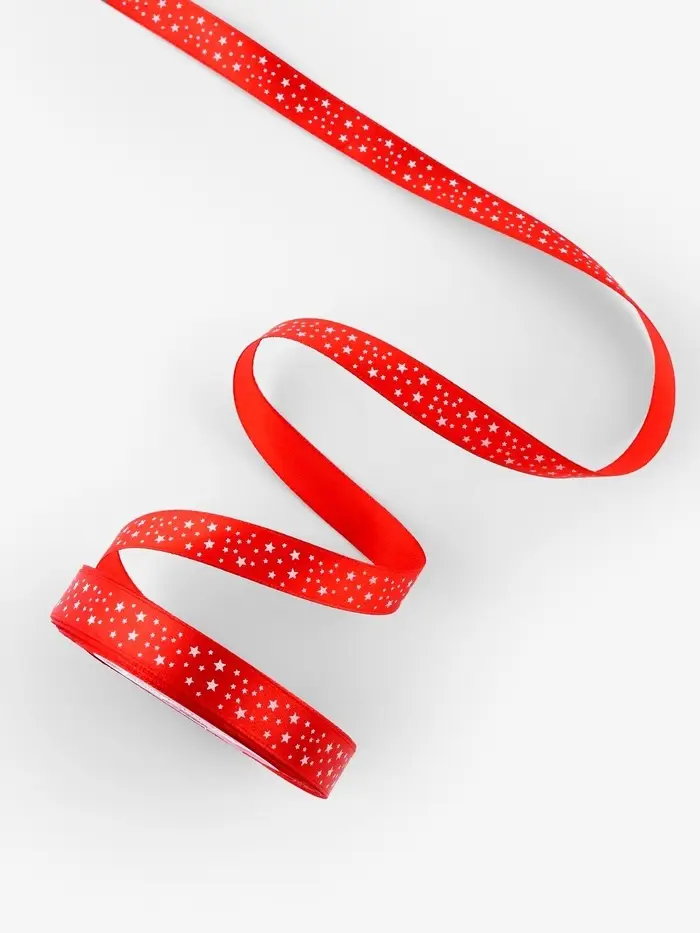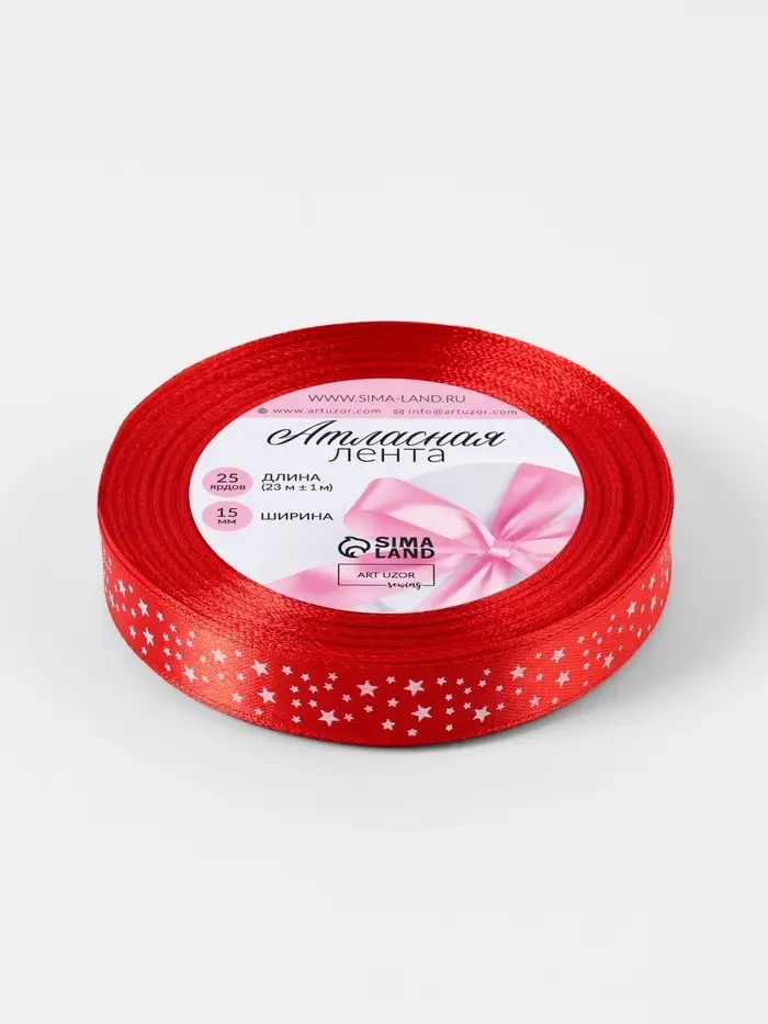 Лента атласная «Звёзды», 15 мм, 23±1 м, красная №026