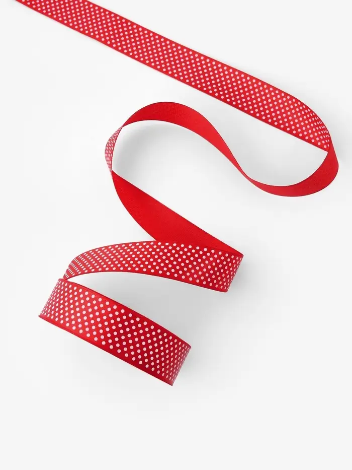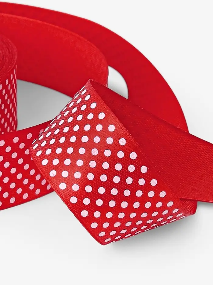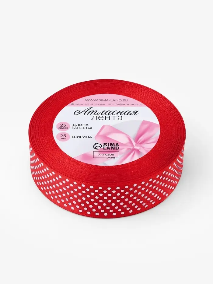 Лента атласная «Горошек», 25 мм, 23±1 м, красная №026