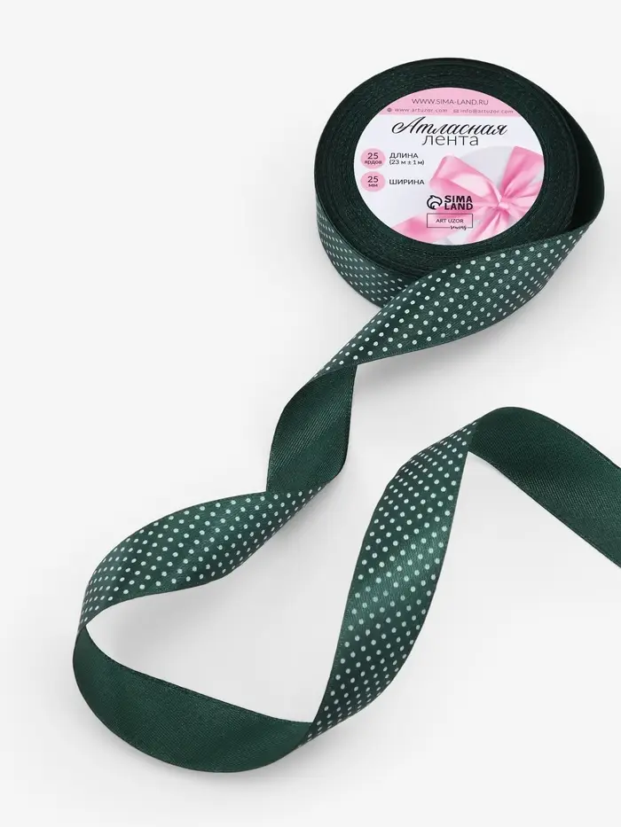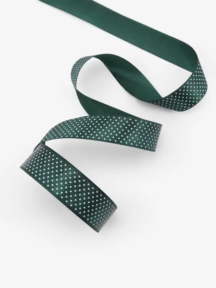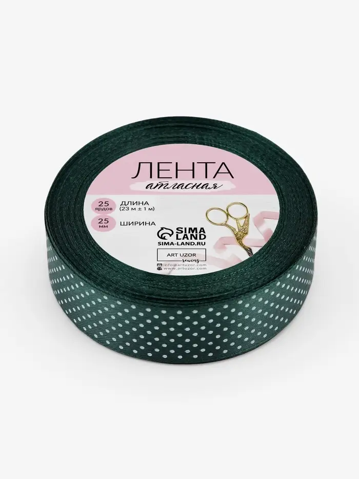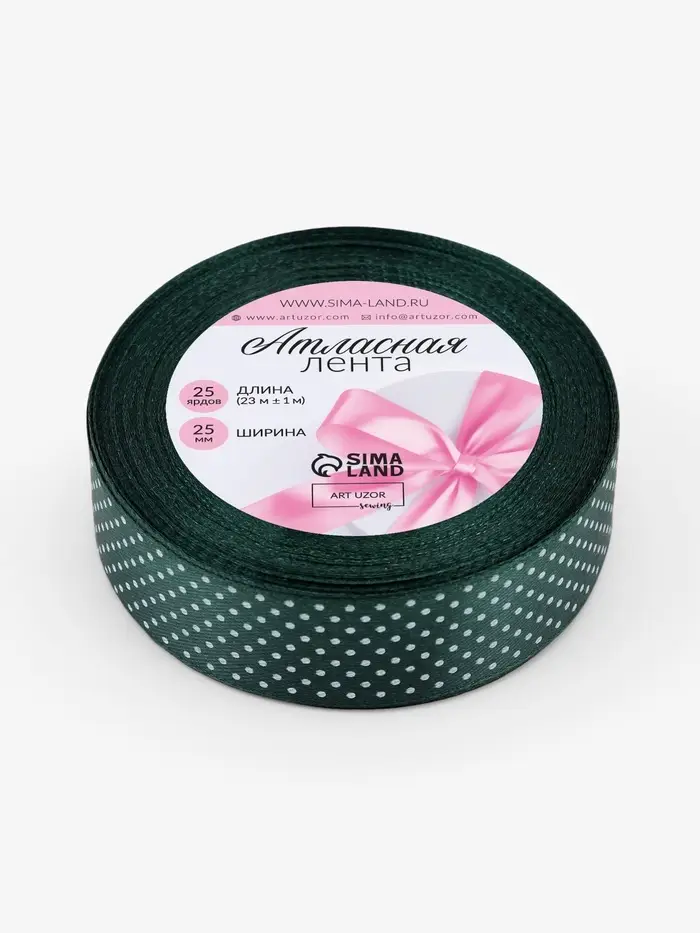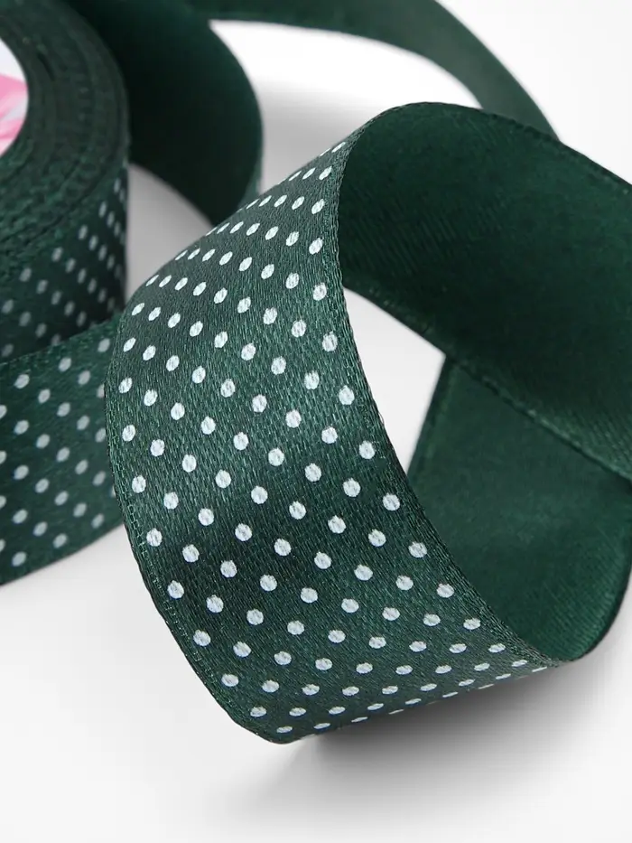Лента атласная «Горошек», 25 мм, 23±1 м, зелёная №128