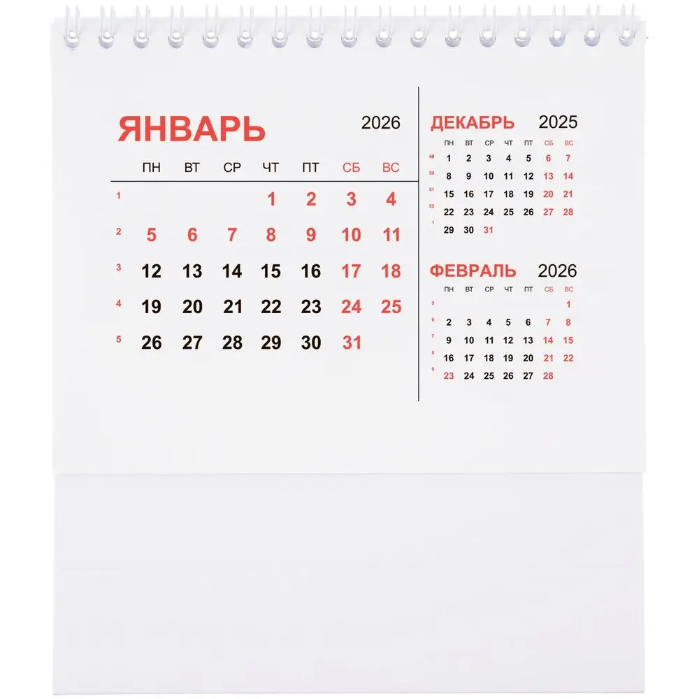 Компактный настольный календарь с датировкой на 2026 год.