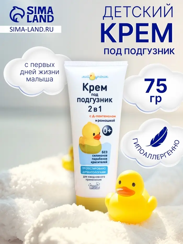 Детский крем под подгузник "Мой утенок" – это специально разработанное средство для ухода за деликатной кожей малыша, защищающее её от раздражений и опрелостей.