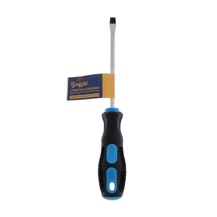 Отвертка шлицевая ТУНДРА, сатин, магнит, двухкомпонентная рукоятка, SL5×100 мм