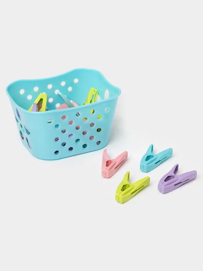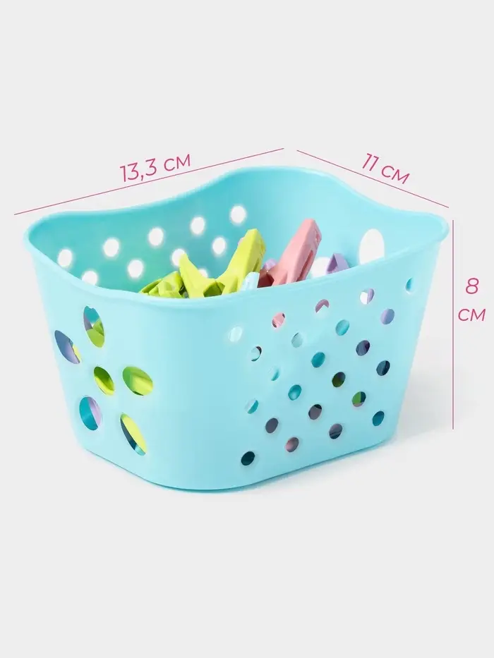 Кроме того, прищепки больше не будут пропадать и обнаруживаться в самых неожиданных местах: в комплект включена цветная корзинка для их хранения.