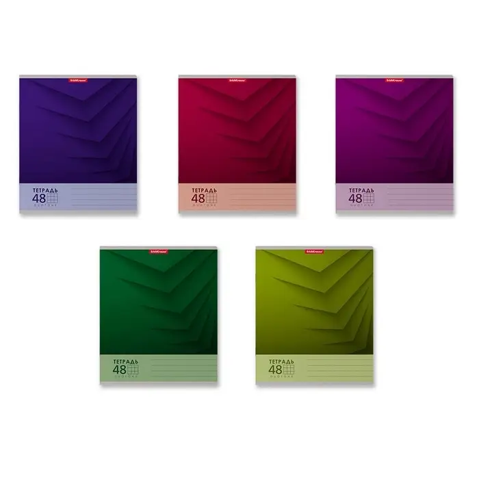 Тетрадь общая формата А5+ (170х203 мм). Обложка из высококачественного мелованного картона плотностью 190 г/м2. В блоке 48 листов в клетку с полями. Бумага офсетная плотностью 60 г/м2. Цвет линовки - синий. Скругленные уголки обложки и блока. Тип скрепления - скоба. Тетради одного цвета упакованы в термоусадочную пленку по 5 штук. Товар поставляется в нескольких вариантах цвета без возможности выбора.