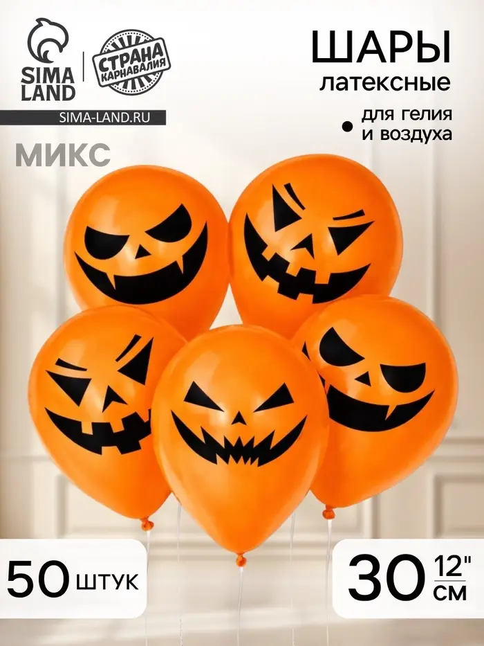 Воздушные шары латексные 12" «Страшные тыквы», 50 шт., МИКС