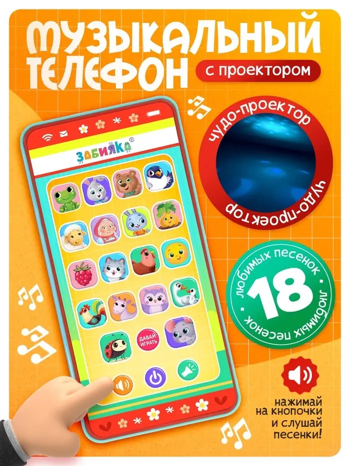 Музыкальный детский телефон «Весёлые потешки», с проектором, 18 песенок