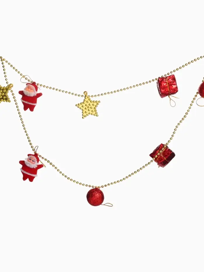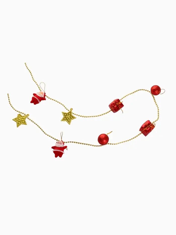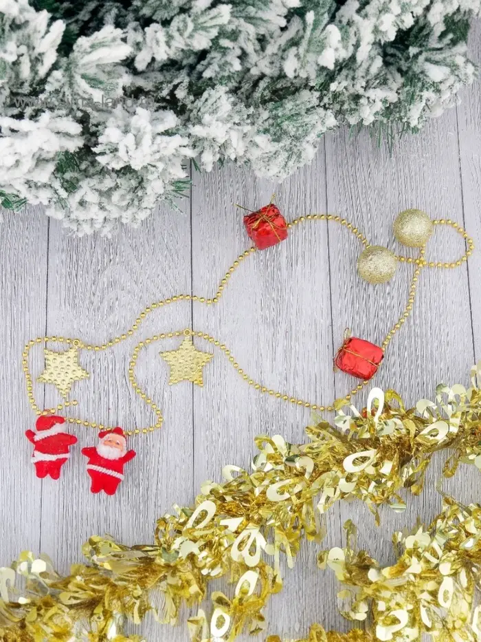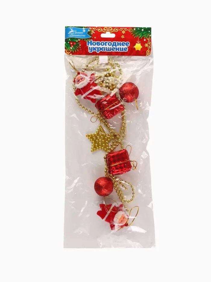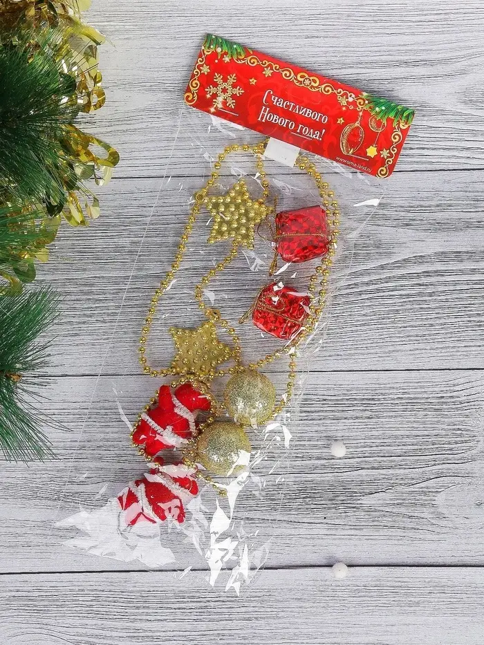 Эти новогодние бусы длиной 90 сантиметров в красно-золотистых тонах станут ярким украшением для елки и праздничного интерьера. Их дизайн с рисунком и насыщенные цвета создают праздничную атмосферу, которая подчеркнет торжественность зимних праздников.