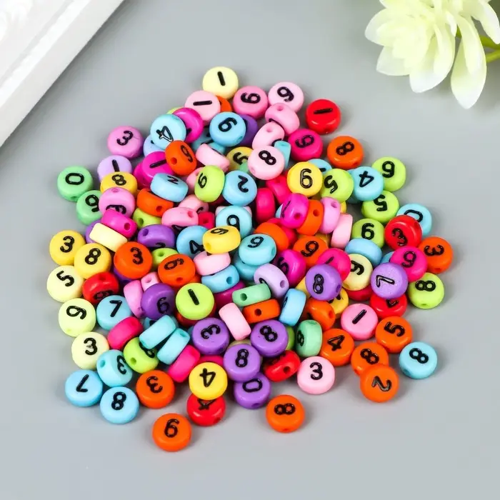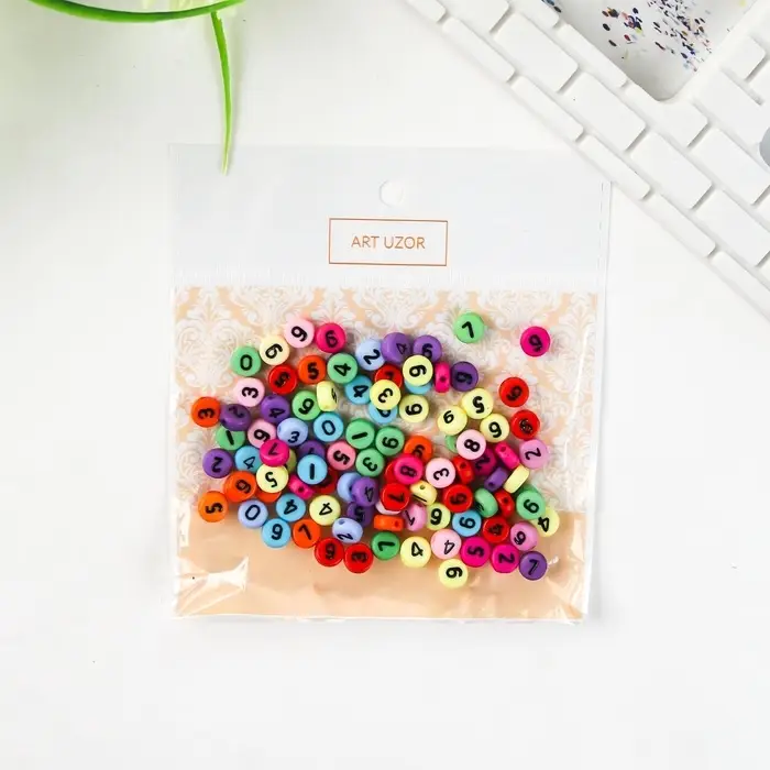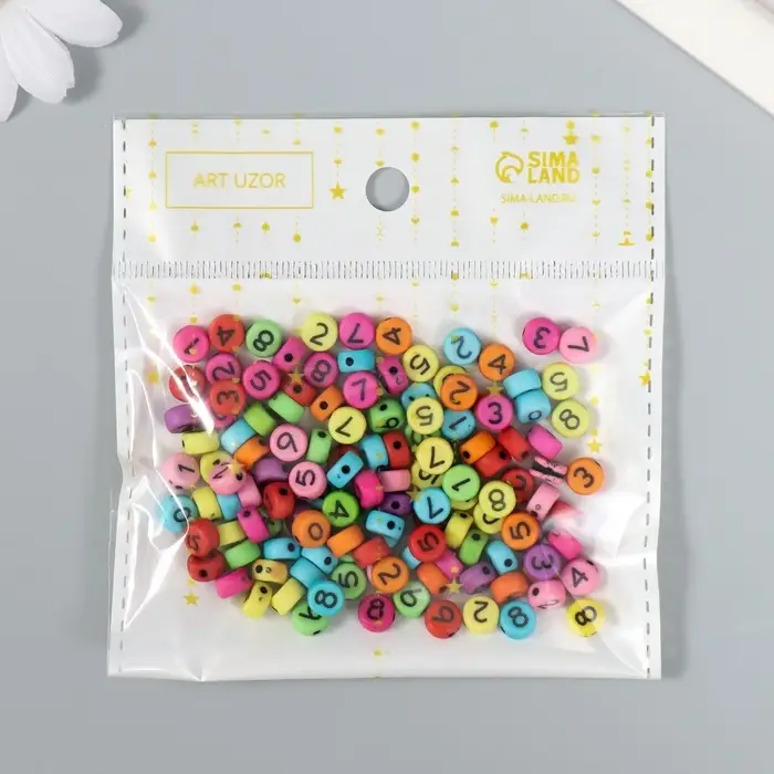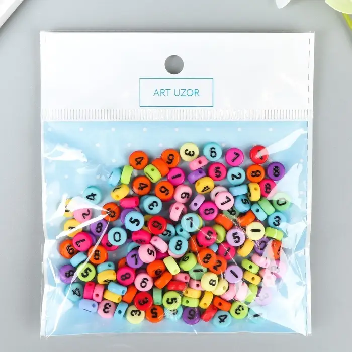 Набор бусин для рукоделия и плетения «Арт Узор. Разноцветные цифры», пластик, 20 г, 0.7×0.7 см
