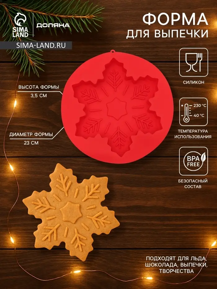 Форма для выпечки новогодняя Доляна «Снежинка», силикон, 23×3.5 см, красная