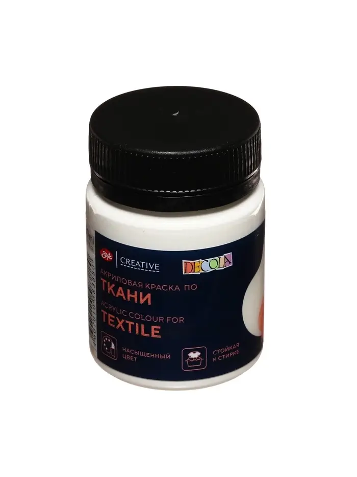 Краска по ткани, банка 100 мл, ЗХК Decola, белая 4127104, (акриловая на водной основе)