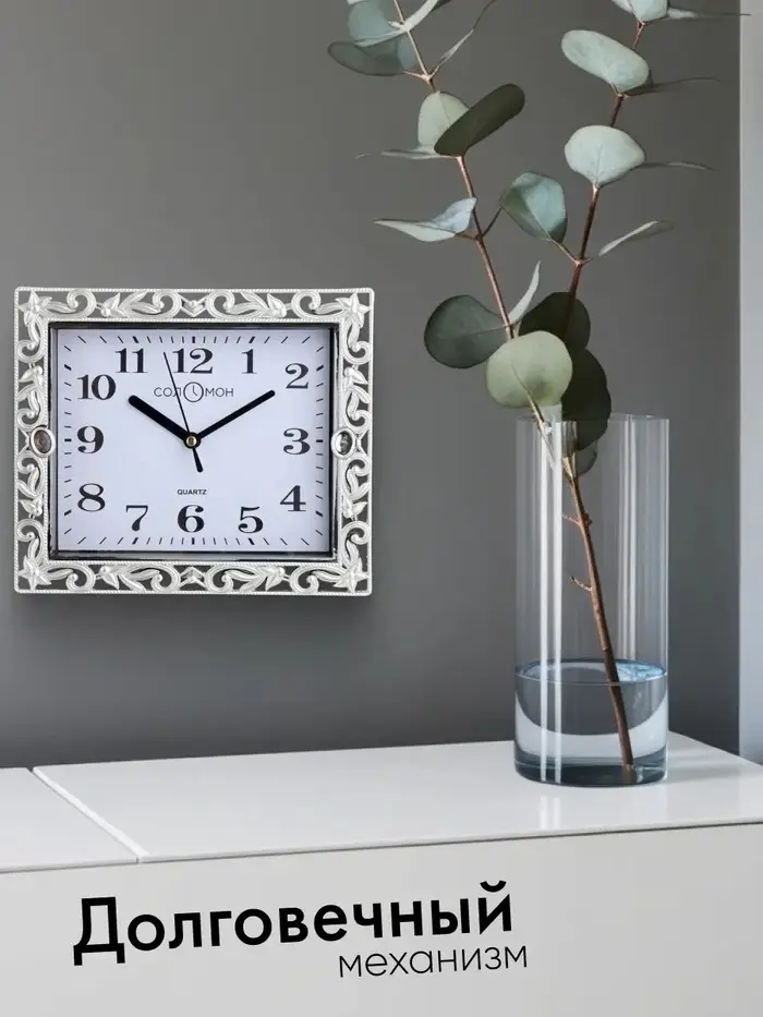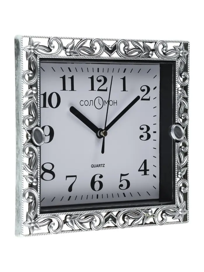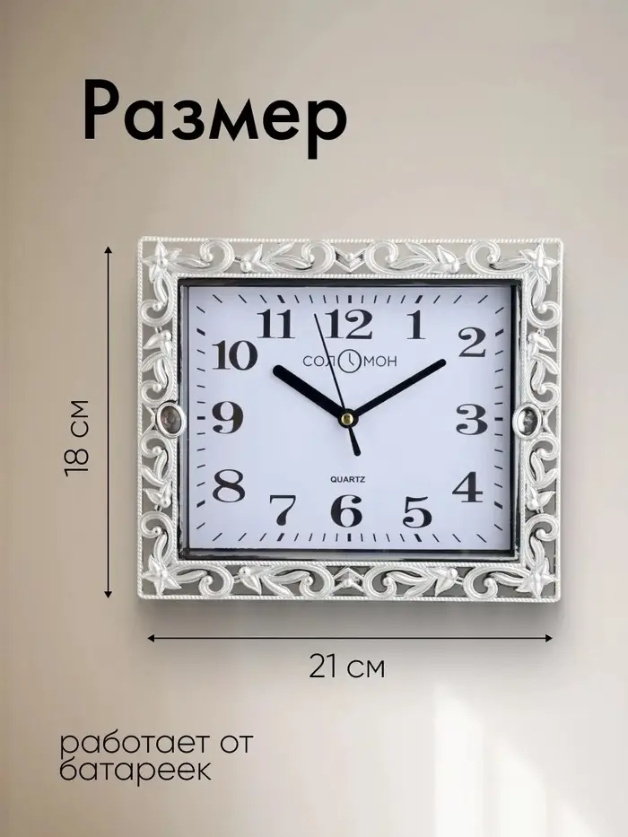 Настенные часы в классическом стиле дополняют интерьер и обеспечивают удобное считывание времени в любой обстановке. Прямоугольный корпус с хромированным эффектом выглядит аккуратно и подходит как для дома, так и для офиса.
