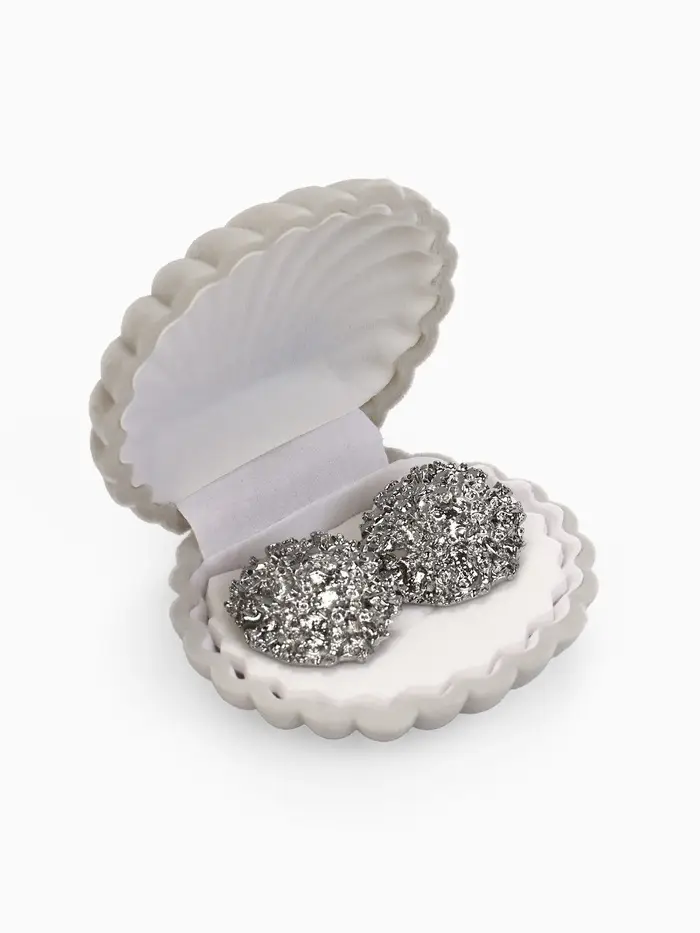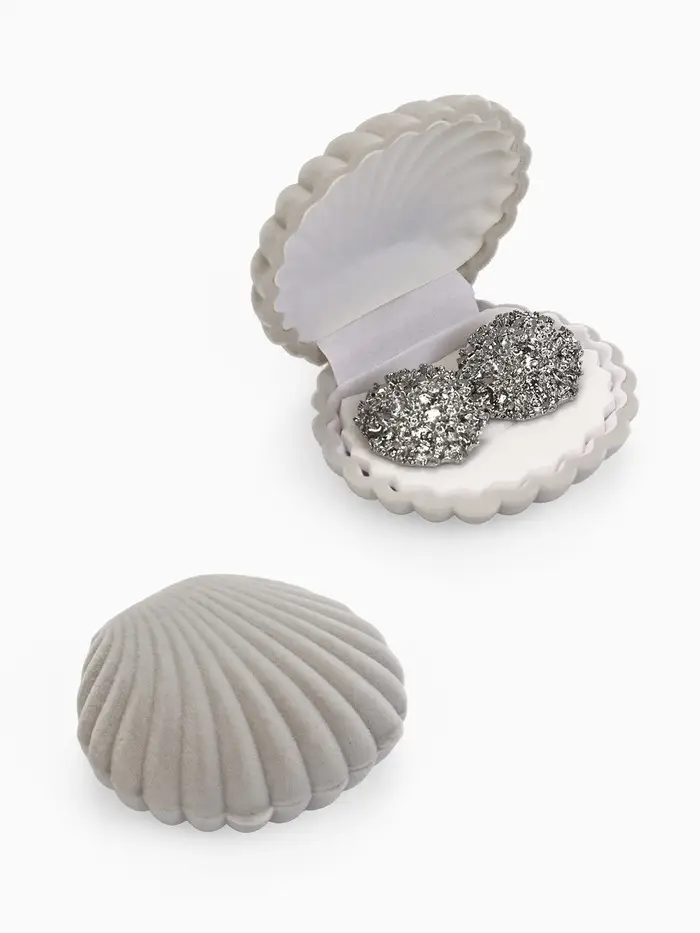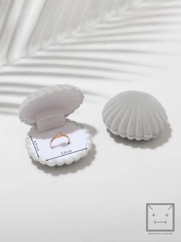 Сдержанная элегантность серого бархатного футляра с фигурной формой «Ракушка» создаёт идеальные условия для хранения колец и серёжек, подчёркивая их красоту и уникальность. Компактные размеры 6×5,5 см делают его удобным для повседневного использования и путешествий, а белая вставка внутри аккуратно фиксирует украшения, предотвращая повреждения и потерю.