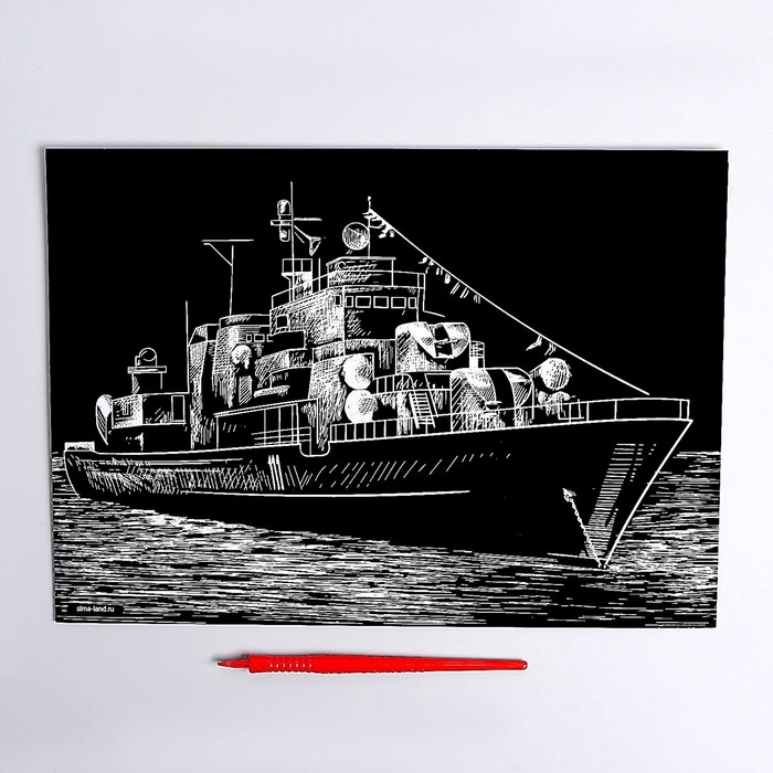 Гравюра «Корабль» с металлическим эффектом «серебро» А4